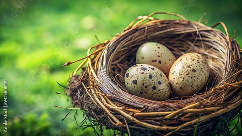 Obraz premium Charming render of a bird's nest with speckled eggs, perfect for spring themes