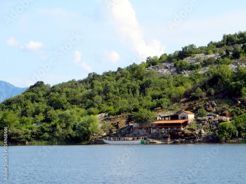 © V.Semeniuk, Fototapeta premium Charming Restaurant by the Tranquil Waters of Skadar Lake in Montenegro During a Sunny Afternoon
