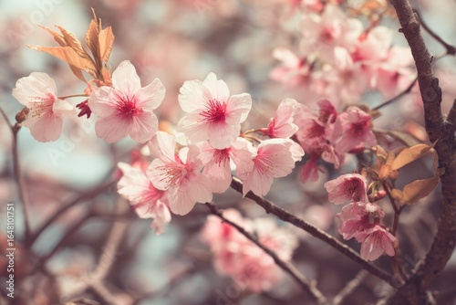 Obraz premium Charming retro cherry blossom tree in spring