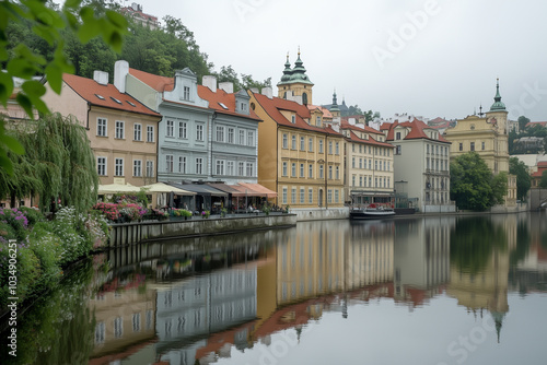 © Василь Тігай, Fototapeta premium Charming Riverside Homes Reflection
