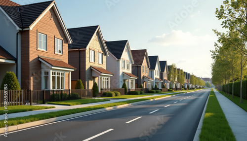 Fototapeta premium Charming Row of Homes in a Peaceful Neighborhood