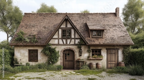 © Yopi, Obraz premium Charming Rustic Cottage Surrounded by Greenery