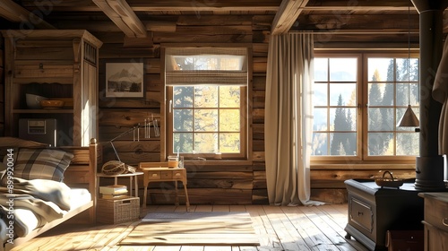 Naklejka premium Charming rustic kitchen with wood paneling and a bright, airy feel.
