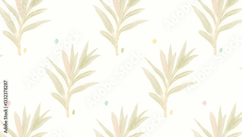 Naklejka premium Charming Shabby Chic Seamless Tile Pattern: Distressed Bamboo Leaves with Soft Pastel Accents on White Background for Elegant and Inviting Spaces - Perfect for Home Decor and Design