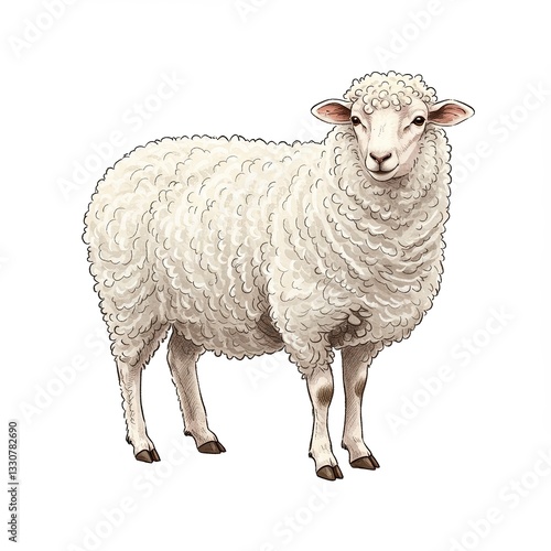 © IbragimovN, Obraz premium Charming sheep with fluffy wool on white background
