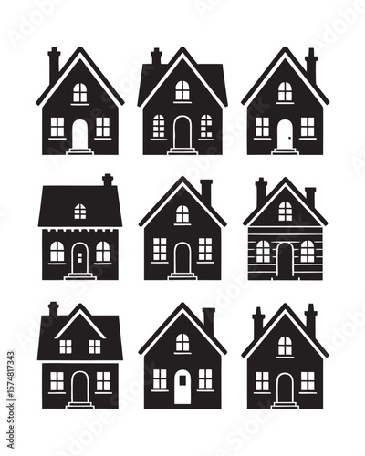 Fototapeta premium Charming Silhouette House Collection A Variety of Simple Black and White Home...