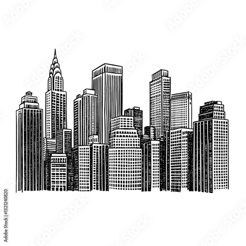 Fototapeta premium Charming skyline illustration featuring intricate engravings of architectural...
