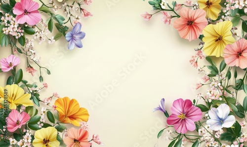 © Tunsale, Obraz premium Charming Spring Flower Frame with Colorful Blooms. AI generated illustration.