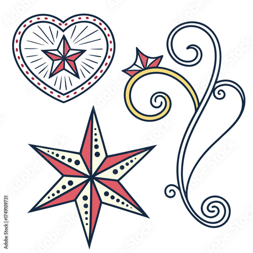 Obraz premium Charming tattooinspired design with heart, star, ring, and flourish