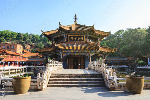 Fototapeta premium Charming, traditional Chinese pavilion in Buddhist temple in the morning