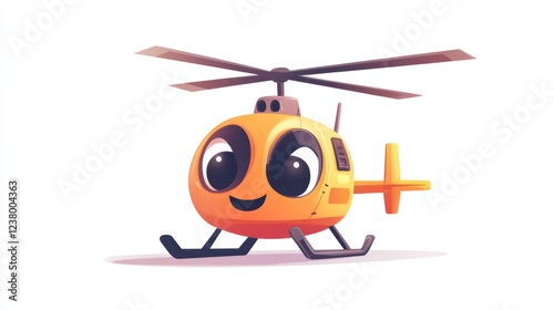 © Napasnan, Obraz premium Charming vector helicopter with simple rounded shapes and a cute expression, isolated on white