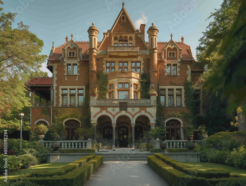 © Rumpa, Fototapeta premium Charming Victorian Mansion with Verdant Gardens