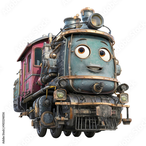 © THTA, Fototapeta premium Charming Vintage Steam Train Locomotive Character Illustration