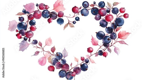 Obraz premium Charming Watercolor Illustration of Berries Forming a Heart Shape