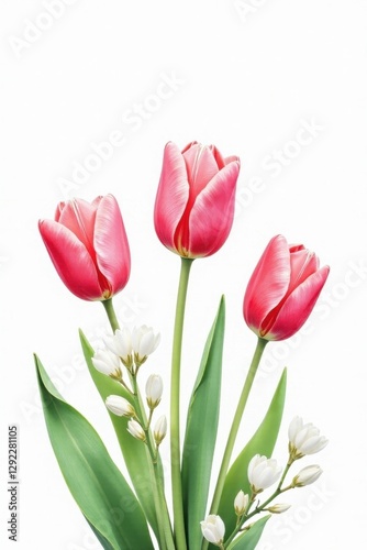 © Thitipa, Fototapeta premium Charming watercolor tulips, white blossoms against pristine white backdrop Perfect for spring designs , white background, white tulips, spring