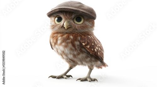© Stan, Fototapeta premium Charming Whimsical Owl in Fashionable Hat: A Cute Cartoon Bird Illustration