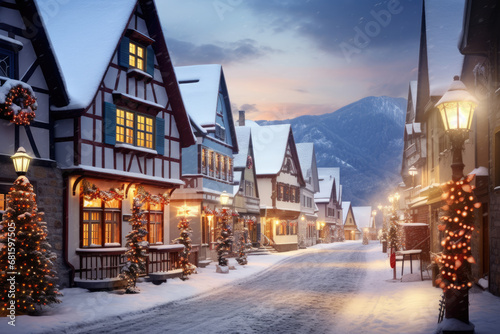 Naklejka premium Charming Winter Village in Panoramic View