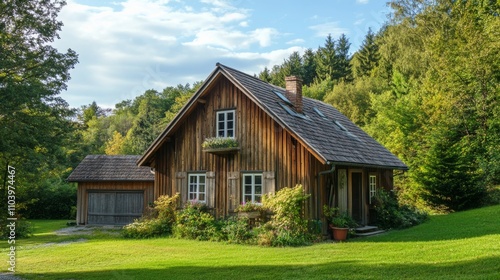 © Pixcellence, Obraz premium Charming Wooden Cottage in the Countryside