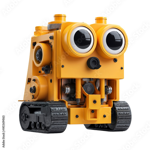 © THTA, Fototapeta premium Charming Yellow Robot with Big Eyes on Tank Tracks - 3D Render