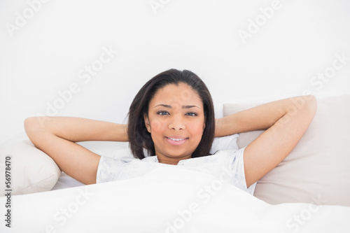 Fototapeta premium Charming young dark haired model relaxing in her bed