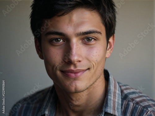 © KraPhoto, Obraz premium Charming young man with a warm smile looking directly into the camera