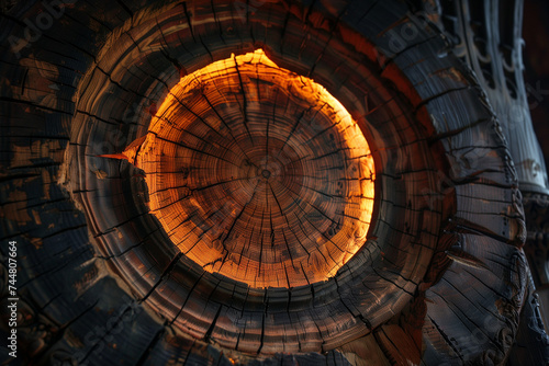 © aimired, Fototapeta premium Charred Tree Stump with Fire within, Wild Fire Tree Stump Cross Section