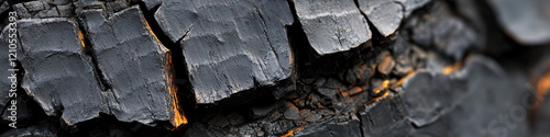 © Lila Patel, Fototapeta premium Charred Wood Texture with Ember Detail