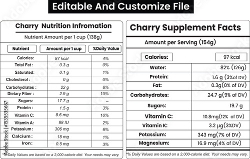 © vector, Fototapeta premium Charry Nutrition Facts, Charry Supplement Facts