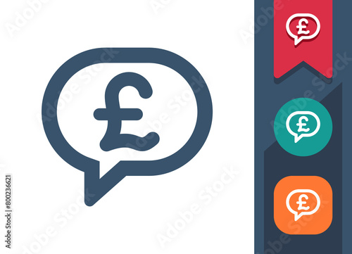 © 13ree_design, Obraz premium Chat Bubble Icon. Speech Bubble, Comment, Message, Money, Pound Sterling