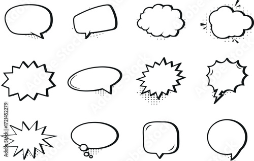 Fototapeta premium chat bubble icons, speech balloon vector, conversation doodles, communication bubble pack, chatting symbols vector, talk bubble graphics, online message icons, forum chat illustrations, bubble flat de