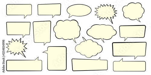 © Maksim, Obraz premium Chat bubble in yellow, speech bubble, message box set. Yellow background quotespeech bubble.