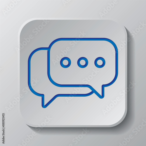 © Leo Kavalli, Naklejka premium Chat, comment, speech bubble simple icon vector. Flat design. Paper cut design. Cutted blue symbol with shadow. Gray badge button, gray background