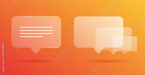 © vladwel, Obraz premium Chat speech bubbles messages collage modern 3d transparent notifications modern design vector graphic illustration set, dialog talk balloons poster orange white, support help service idea
