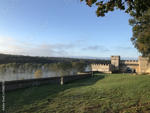 © JC DRAPIER, Naklejka premium chateau de la tranchade et brume dans la vallée