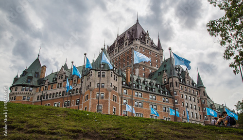 Naklejka premium Chateau Frontenac hotel in Quebec City streets in Canada