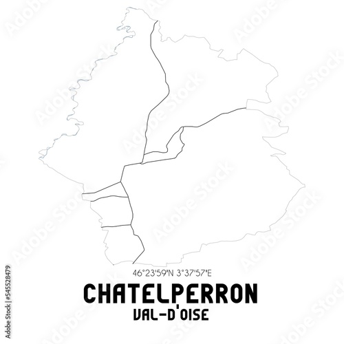 Fototapeta premium CHATELPERRON Val-d'Oise. Minimalistic street map with black and white lines.