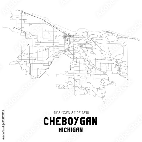 Naklejka premium Cheboygan Michigan. US street map with black and white lines.