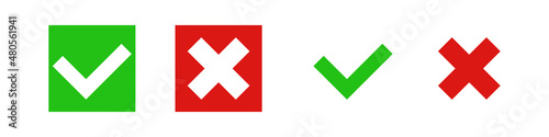 © illust_monster, Obraz premium Check mark and cross mark icon set. Right and wrong. Vector.