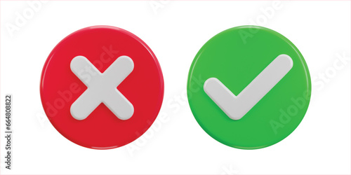 Fototapeta premium check mark and cross mark symbols icon 3d render