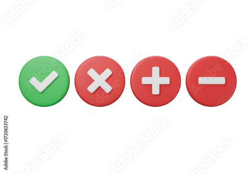 Obraz premium Check mark, cross, plus, and minus icons isolated on transparent background