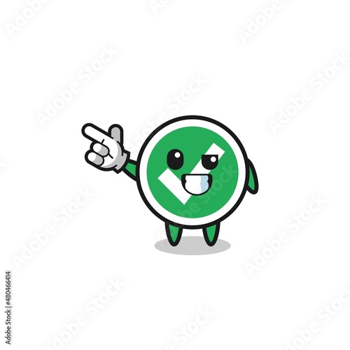 Obraz premium check mark mascot pointing top left