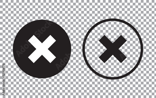 © Charles stockio, Obraz premium check mark rejected icon in a circle. cross symbol in black color, vector illustration.