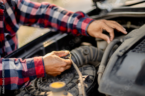 © Pang, Obraz premium Check the condition of the car before departure.