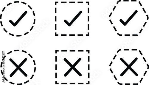Fototapeta premium 8 Checkbox icon Dotted line set, thin line vector, editable stroke