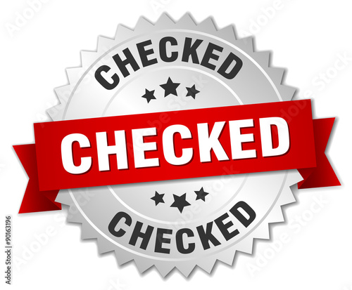 © Aquir, Obraz premium checked 3d silver badge with red ribbon
