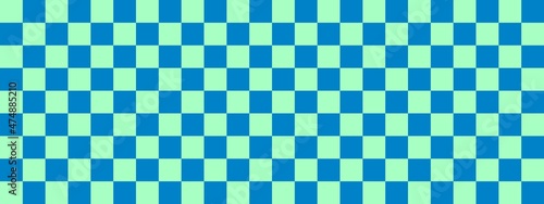 Fototapeta premium Checkerboard banner. Blue and Mint colors of checkerboard. Small squares,...
