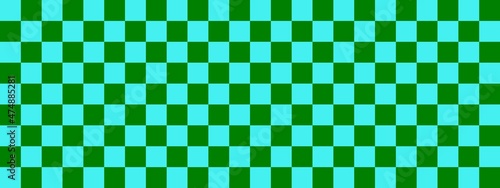 Fototapeta premium Checkerboard banner. Green and Cyan colors of checkerboard. Small squares,...