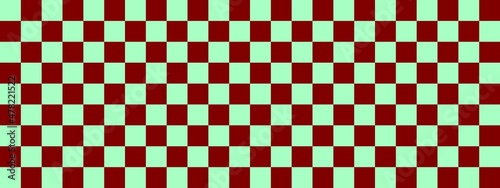 Fototapeta premium Checkerboard banner. Maroon and Mint colors of checkerboard. Small squares,...