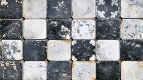 Obraz premium Checkerboard Pattern Tile Floor with Worn Detail