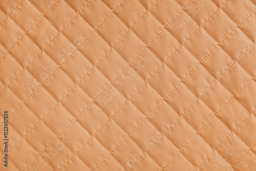 Fototapeta premium Checkered, diamond stitching pattern, orange quilted fabric background. Blanket or puffer jacket, stitch rhombus texture close up, macro. Wallpaper, backdrop.